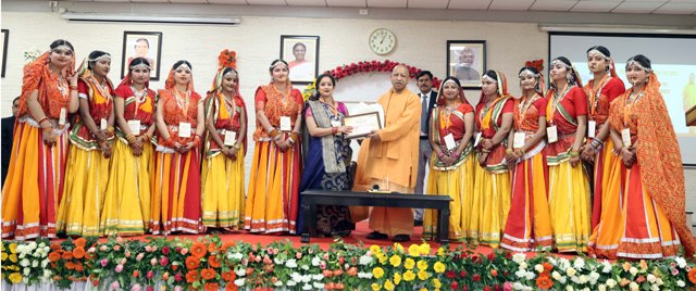 गणतंत्र दिवस के अवसर पर कलाकारों को सम्मानित करते हुए मुख्यमंत्री योगी आदित्यनाथ