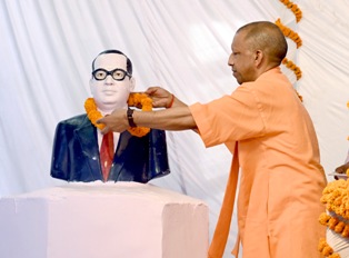 मुख्यमंत्री जी आज यहां बाबा साहब डॉ0 भीमराव रामजी आंबेडकर की 135वीं जयन्ती के अवसर पर भारत रत्न बोधिसत्व बाबा साहेब डॉ0 भीमराव आंबेडकर महासभा द्वारा आयोजित कार्यक्रम में अपने विचार व्यक्त कर रहे थे। उन्होंने डॉ0 भीमराव रामजी आंबेडकर मूर्ति विकास योजना के अन्तर्गत प्रदेश के समस्त 75 जनपदों में स्थापित डॉ0 आंबेडकर की 75 मूर्तियों के सौन्दर्यीकरण एवं संरक्षण कार्यों का शिलान्यास किया। उन्होंने महासभा परिसर में स्थापित तथागत बुद्ध एवं डॉ0 भीमराव आंबेडकर की प्रतिमा पर माल्यार्पण किया तथा डॉ0 आंबेडकर के अस्थि कलश पर पुष्पांजलि अर्पित की। इस कार्यक्रम में डॉ0 भीमराव आंबेडकर महासभा द्वारा प्रकाशित स्मारिका का विमोचन किया गया। मुख्यमंत्री जी को भारतीय संविधान की प्रति तथा स्मृति चिन्ह के रूप में डॉ0 आंबेडकर की प्रतिमा भेंट की गयी। इससे पूर्व, मुख्यमंत्री जी ने जी0पी0ओ0, हजरतगंज स्थित डॉ0 भीमराव आंबेडकर की प्रतिमा पर पुष्प अर्पित कर उन्हें श्रद्धांजलि दी।