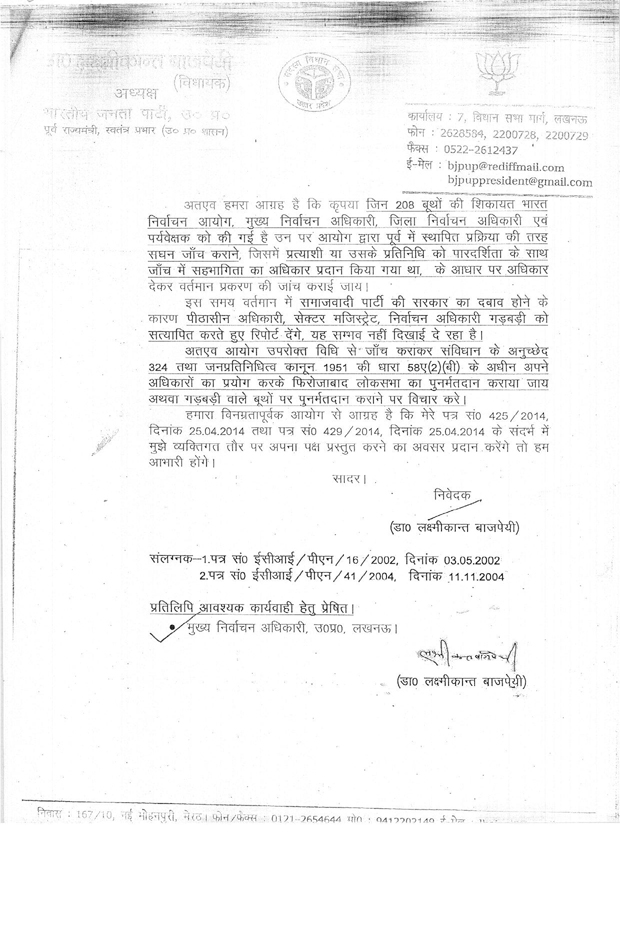अध्यक्ष डा0 बाजपेयी ने चुनाव आयोग के
