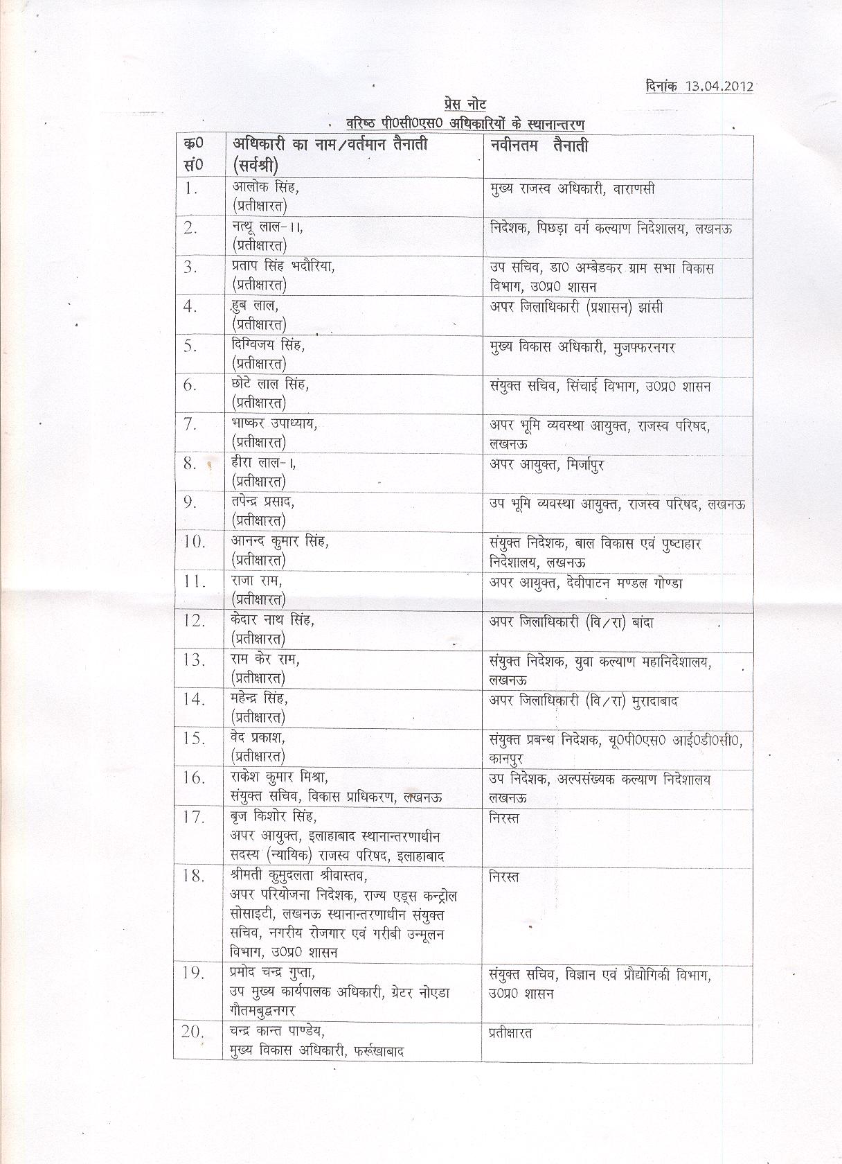 शासन ने आज पीसीएस अधिकारियों के भारी