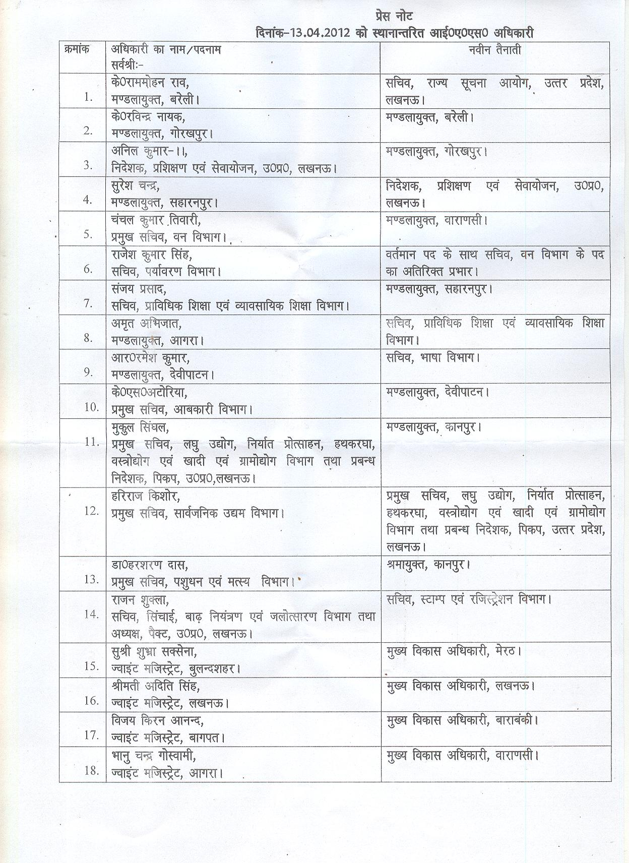 हैं। तबादला आदेश में वरिष्ठ आईएएस और नये