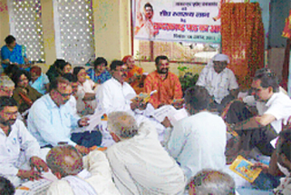 पाठ तथा अरदास करते समर्थक। (फोटो: उप्रससे)