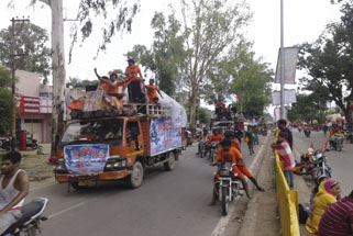 कांवड़ तेज डीजे बजाते हुए हाईवे से गुजरे और जिन्हे