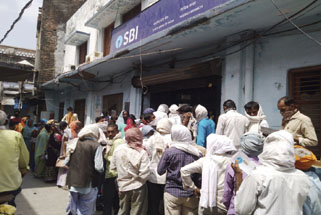 बैंक में उमड़ी भीड़ उड़ा रही दो गज की दूरी के निर्देश की धज्जियां