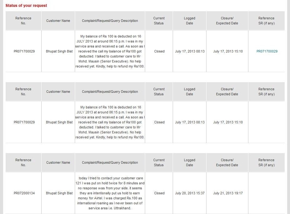 लिये था। एयरटेल कर्मी यह मानने