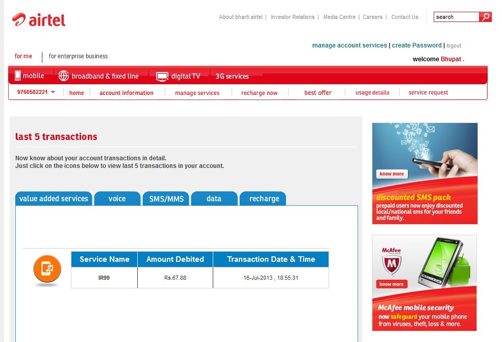 एयरटेल मोबाइल पर देहरादून से आयी