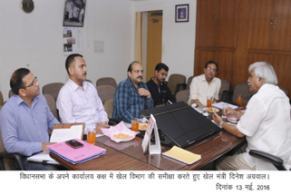 । विधानसभा स्थित कार्यालय कक्ष में खेल एवं कानूनी