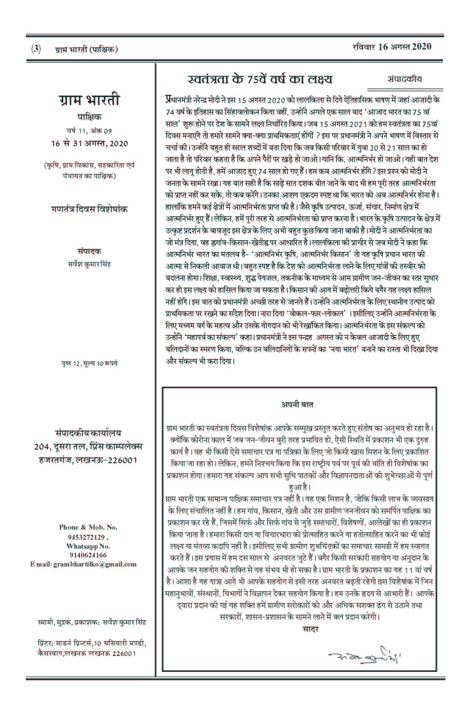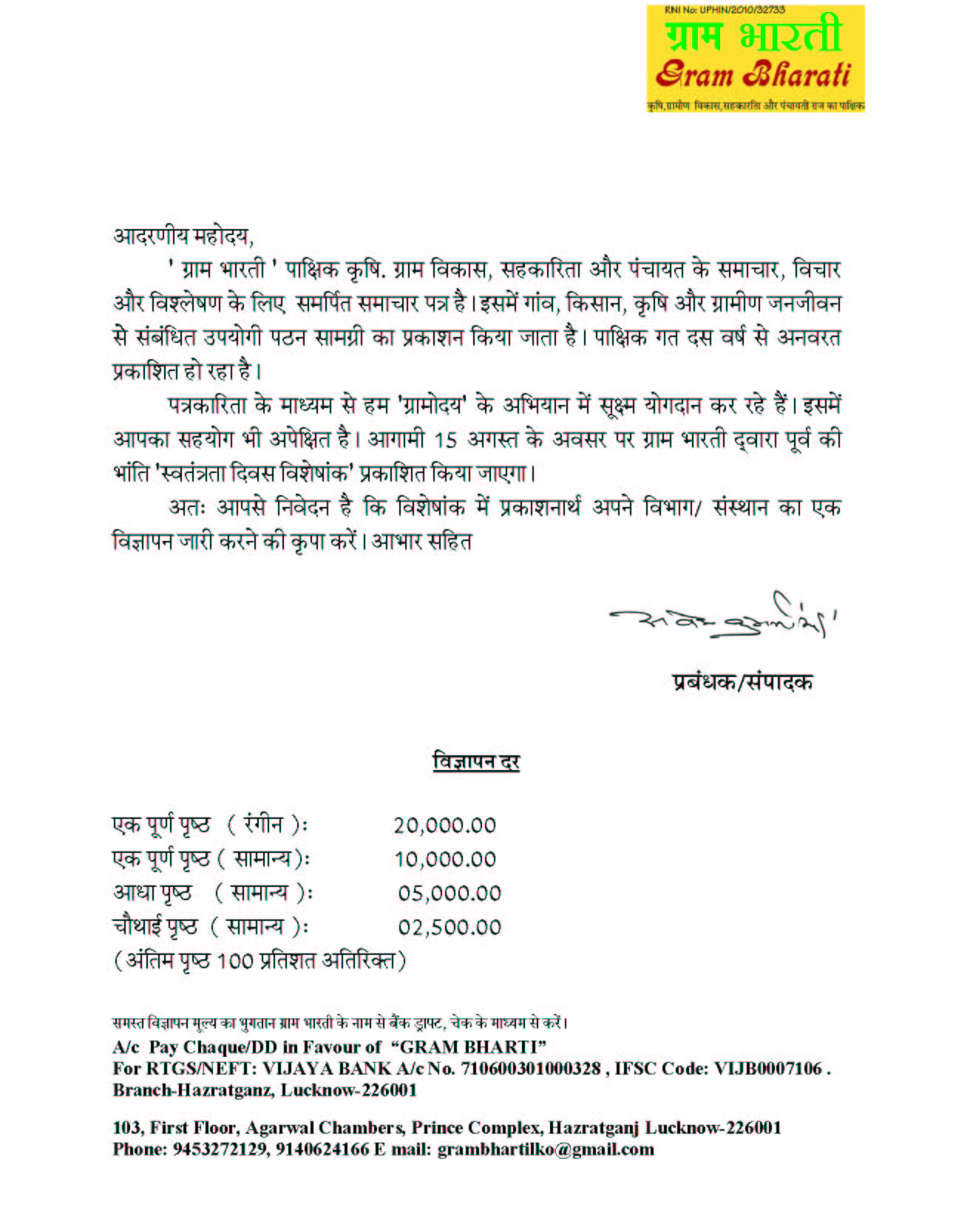 स्वतंत्रता दिवस विशेषांक विज्ञापन पत्र Download PDF, JPEG