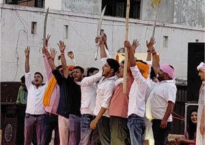 भक्ति के आड़ में शस्त्र लहराकर शक्ति प्रदर्शन का वीडियो वायरल, कानून की जमकर उड़ाई गयी धज्जियां।