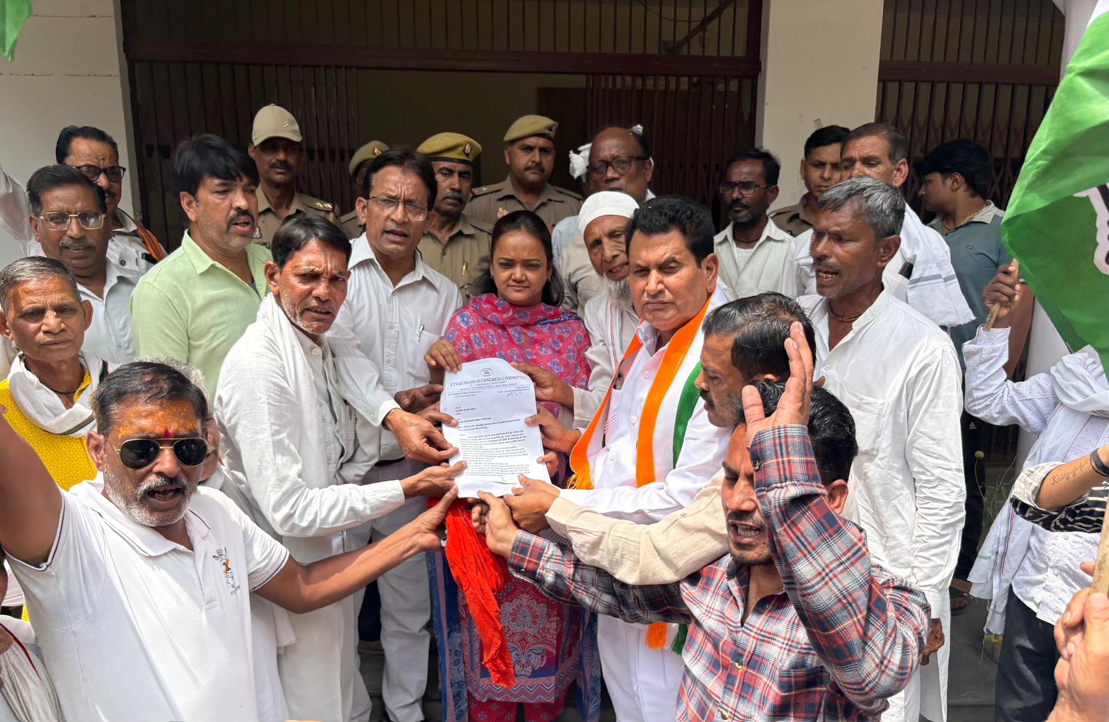 मथुरा। बेमौसम बारिश और ओलावृष्टि से फसलों को हुए भारी नुकसान के विरोध में कांग्रेस पार्टी ने कलेक्ट्रेट परिसर में धरना-प्रदर्शन किया और महामहिम राष्ट्रपति के नाम संबोधित ज्ञापन जिलाधिकारी के माध्यम से सौंपा।