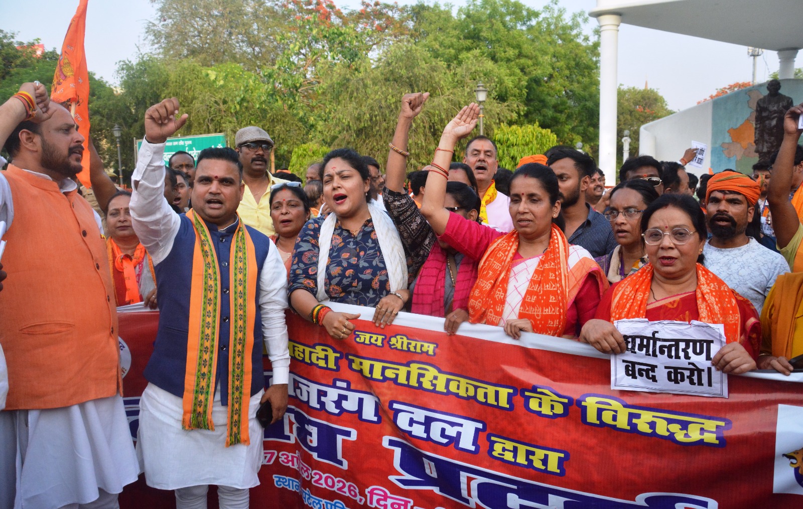 उन्होंने कहा कि अवैध धर्मांतरण विरोधी राष्ट्रव्यापी कानून बनाना चाहिए और राष्ट्रीय सुरक्षा तथा देश के समक्ष उपस्थिति इस चुनौती का प्रभावी मुकाबला करना चाहिए। प्रदर्शन में प्रमुख रूप से संगठन मंत्री समरेंद्र, प्रांत प्रचार प्रमुख नृपेंद्र ,प्रांत सेवा प्रमुख धर्मेंद्र लखनऊ विभाग मंत्री योगेश विभाग संयोजक विजय बजरंगी सहित विश्व हिंदू परिषद एवं बजरंग दल के जिला एवं विभाग के अन्य पदाधिकारी भी मौजूद रहे।