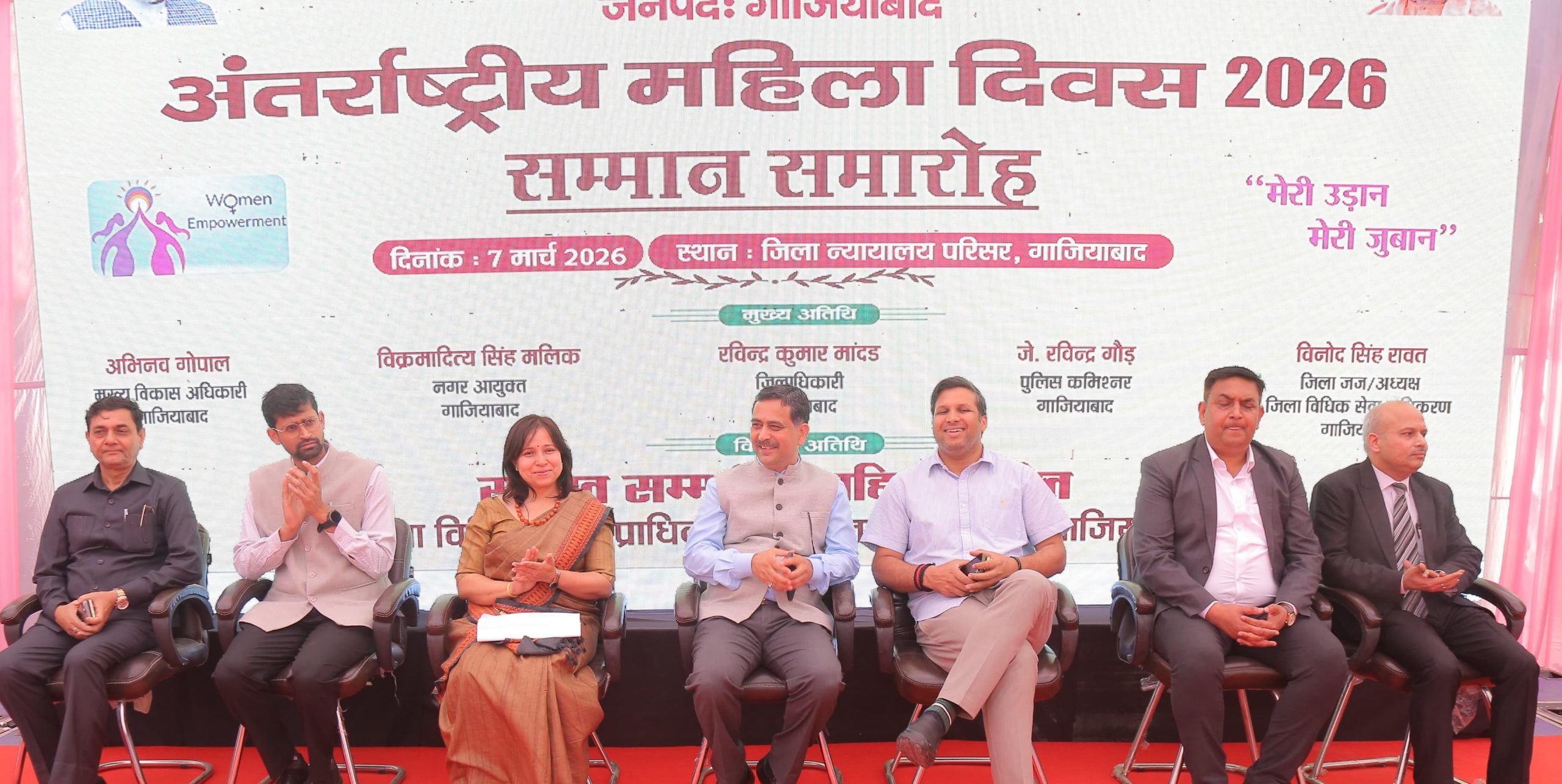 गाजियाबाद 7 मार्च। अन्तर्राष्ट्रीय महिला दिवस के अवसर पर जनपद न्यायालय परिसर में मा0 जनपद न्यायाधीश श्री विनोद सिंह रावत की अध्यक्षता व जिलाधिकारी श्री रविन्द्र कुमार मॉंदड़, सीडीओ श्री अभिनव गोपाल सहित अन्य गणमान्य अतिथियों की गरिमामयी उपस्थिति में महिला सम्मान समारोह कार्यक्रम आयोजित किया गया। मा0अतिथिगणों को पौधा भेंट कर स्वागत किया गया। मा0 जनपद न्यायाधीश श्री विनोद सिंह रावत सहित अन्य गणमान्य अतिथियों ने दीप प्रज्जवलित कर कार्यक्रम का शुभारम्भ किया। कार्यक्रम के दौरान प्रदर्शनी एवं विभागों द्वारा स्टॉल भी लगाये गये, जिसका अतिथिगणों द्वारा अवलोकन किया गया। इसमें आगुन्तकों को सरकार द्वारा संचालित योजनाओं की जानकारी उपलब्ध कराई गयी और आवेदन भी कराये गये। कार्यक्रम में सैकड़ों की संख्या में गणमान्य उपस्थित रहे।
